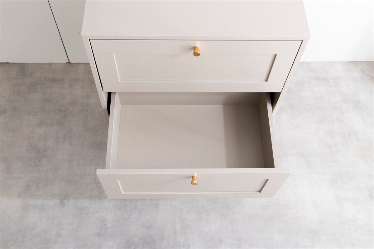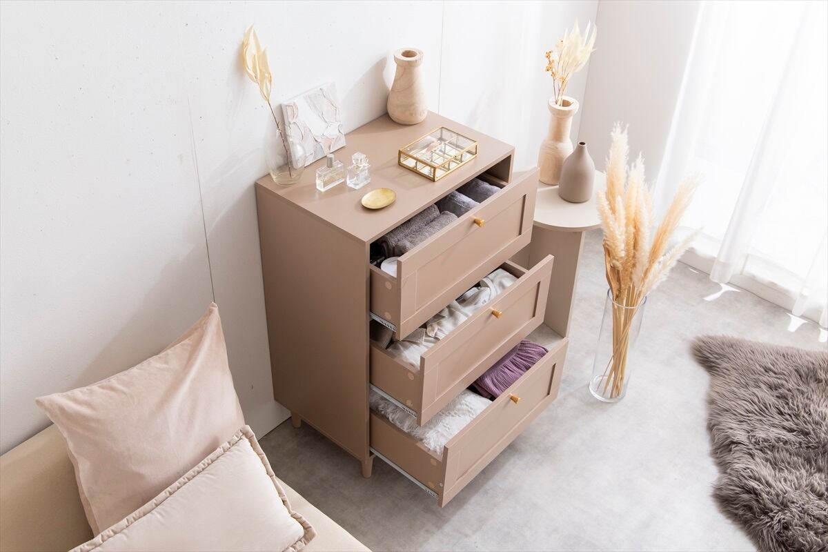 品のある框(かまち)デザインと柔らかなニュアンスカラーが印象的な『Calan(カラン)』シリーズのチェスト